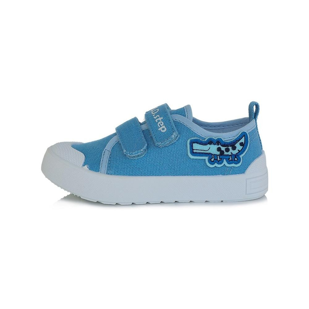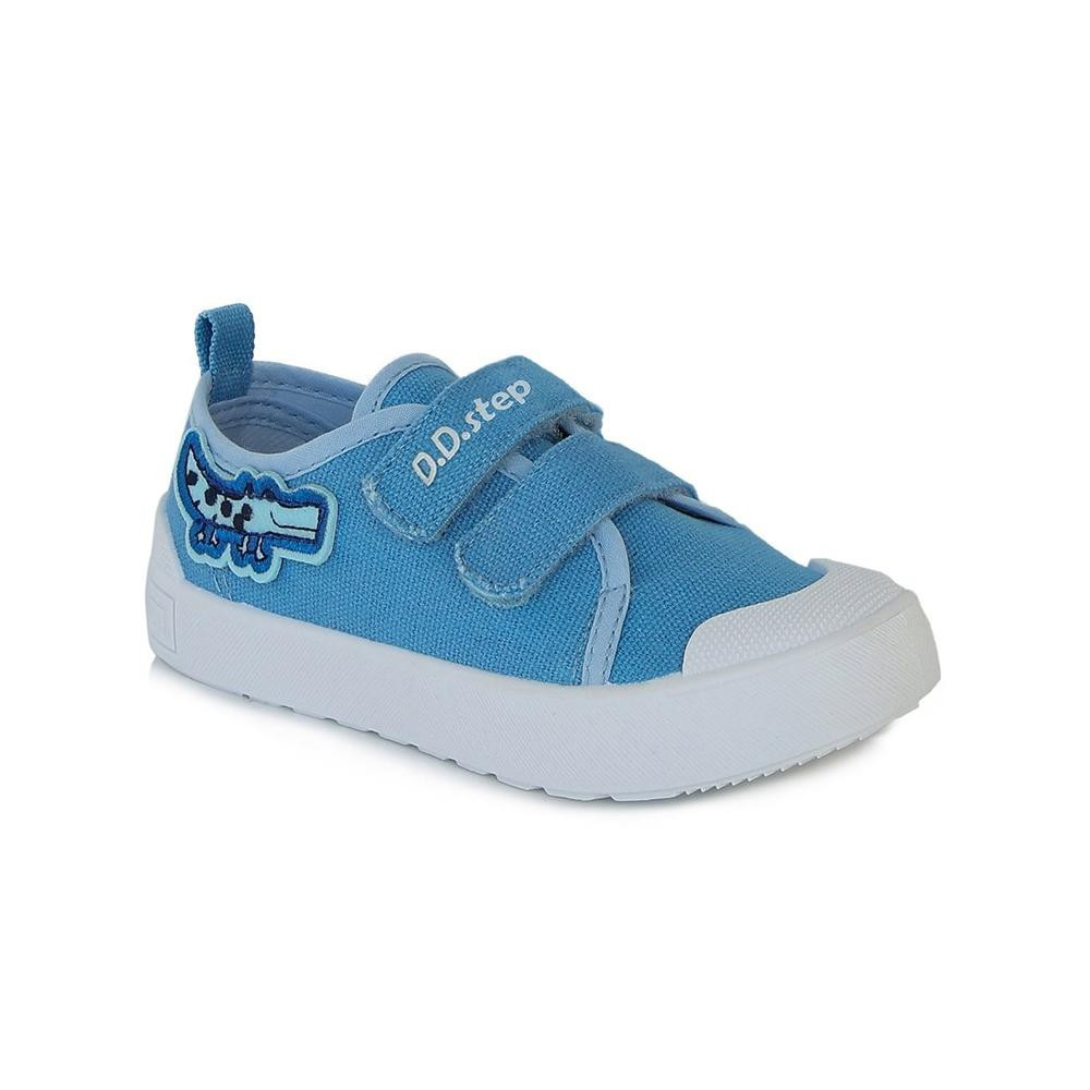 DDSTEP vászoncipő fiúknak  kék színben, oldalán krokodilos díszítéssel,