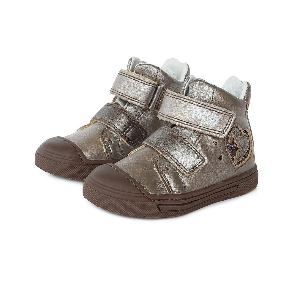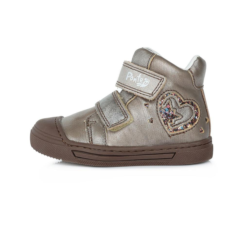 Ponte20 supinált cipő lányoknak bronzos színben, oldalán szívecskés mintával,
