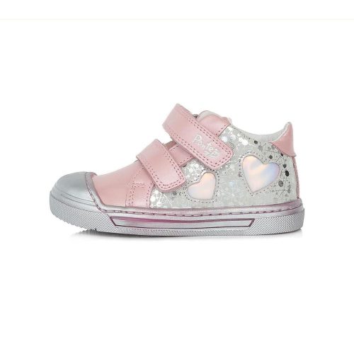 Ponte20 supinált gyerekcipő lányoknak rózsaszín és ezüst színben, fehér szivecskével díszítve,