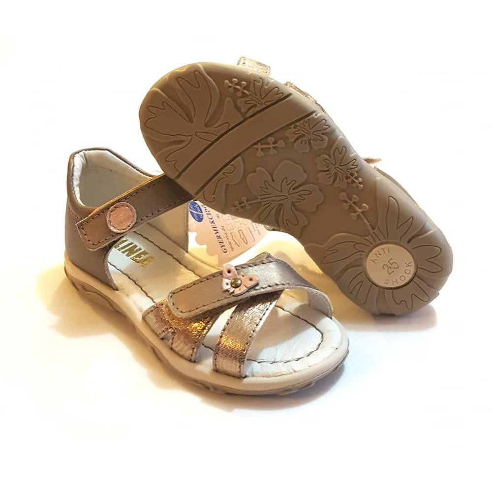LINEA szandál lányoknak bronzos színben, pillangóval díszítve,