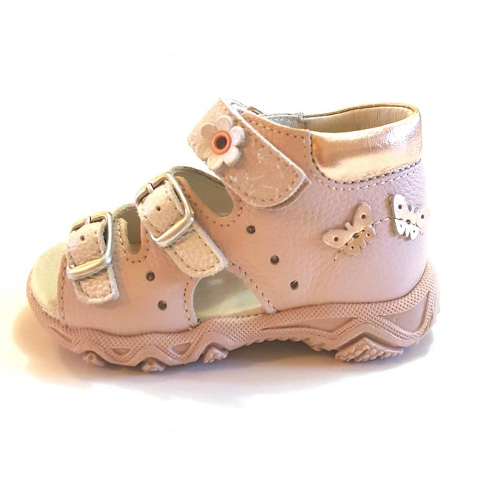 LINEA valódi bőr szandál kislányoknak - púder, pezsgő színben, oldalán pillangóval díszítve,