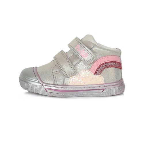 Ponte20 supinált gyerekcipő a DDSTEP-től, ezüst színben, szivárványos-felhős mintával,