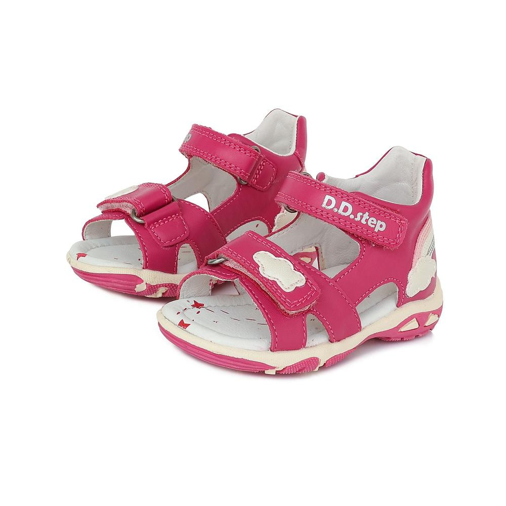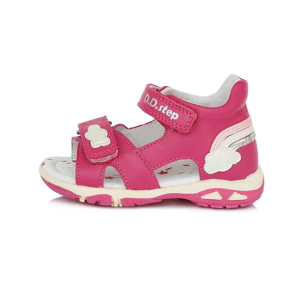 DDSTEP tépőzáras szandál kislányoknak rószaszín színben, oldalán szivárványos, felhős díszítéssel,