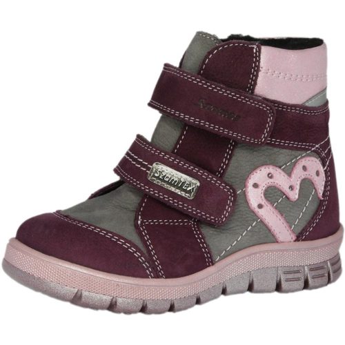 SZAMOS meleg, bundás béléses bakancs lányoknak, szürke-lila-pink, szívecskés mintával,