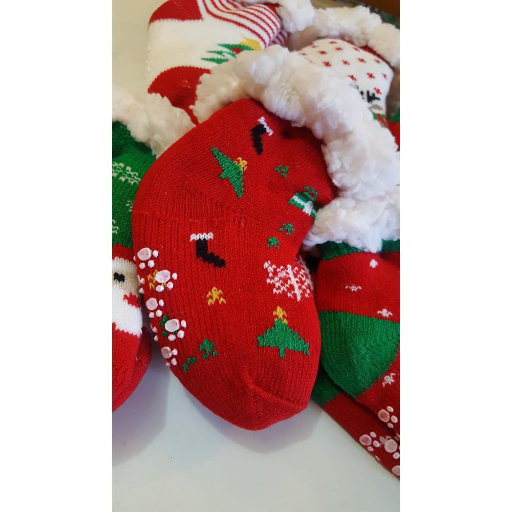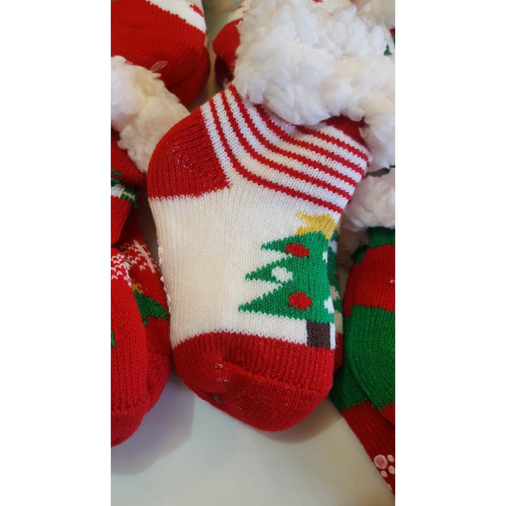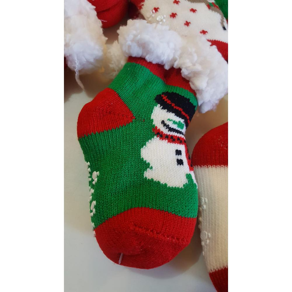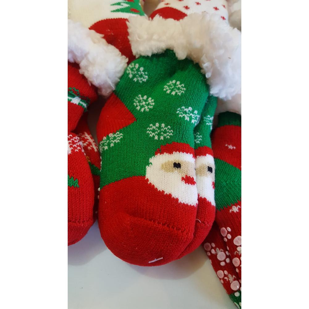 Pihe-puha béléses babazokni karácsonyi, mikulásos mintával, piros-fehér-zöld színkombinációban,